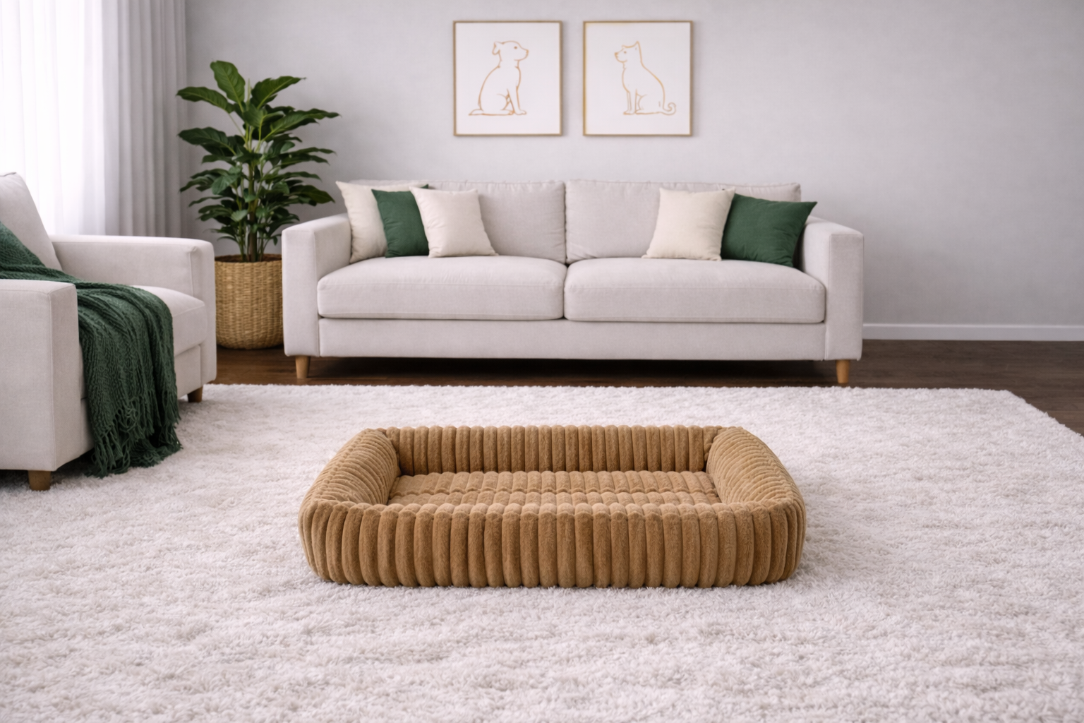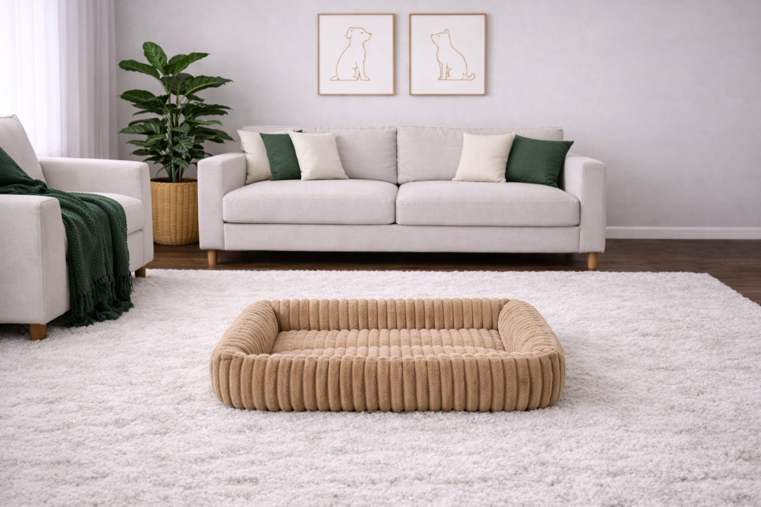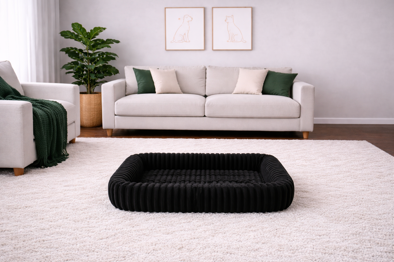 Cama grande y cómoda para perros, diseñada para ofrecer un descanso acogedor durante todo el año. Su diseño tipo sofá con forma cuadrada proporciona un espacio amplio y confortable, ideal para mascotas pequeñas, medianas y grandes.