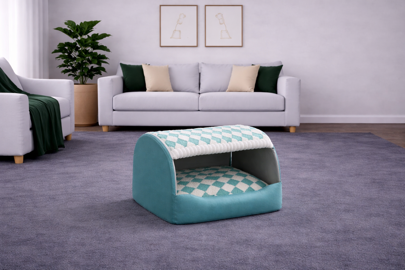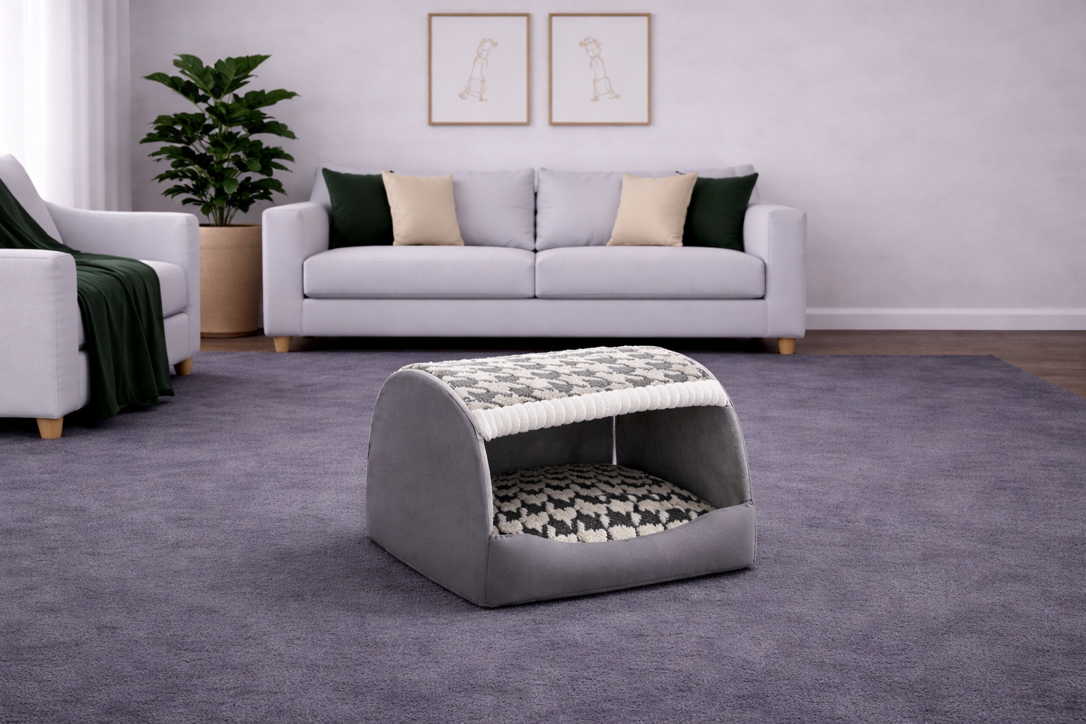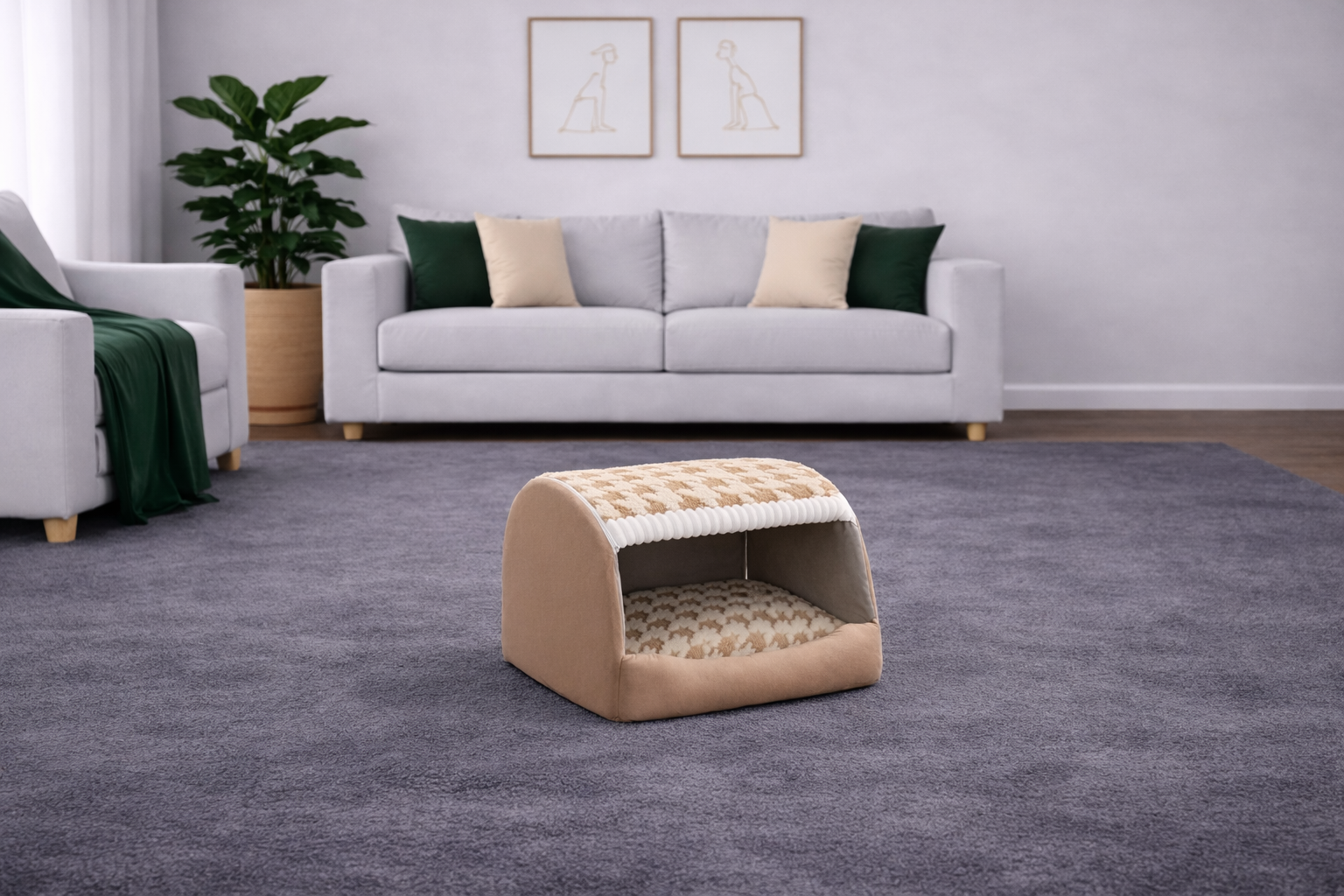Cama tipo cueva pensada para ofrecer un espacio cálido, cómodo y seguro. Su diseño envolvente ayuda a mantener el calor y proporciona una sensación de refugio ideal para el descanso diario.