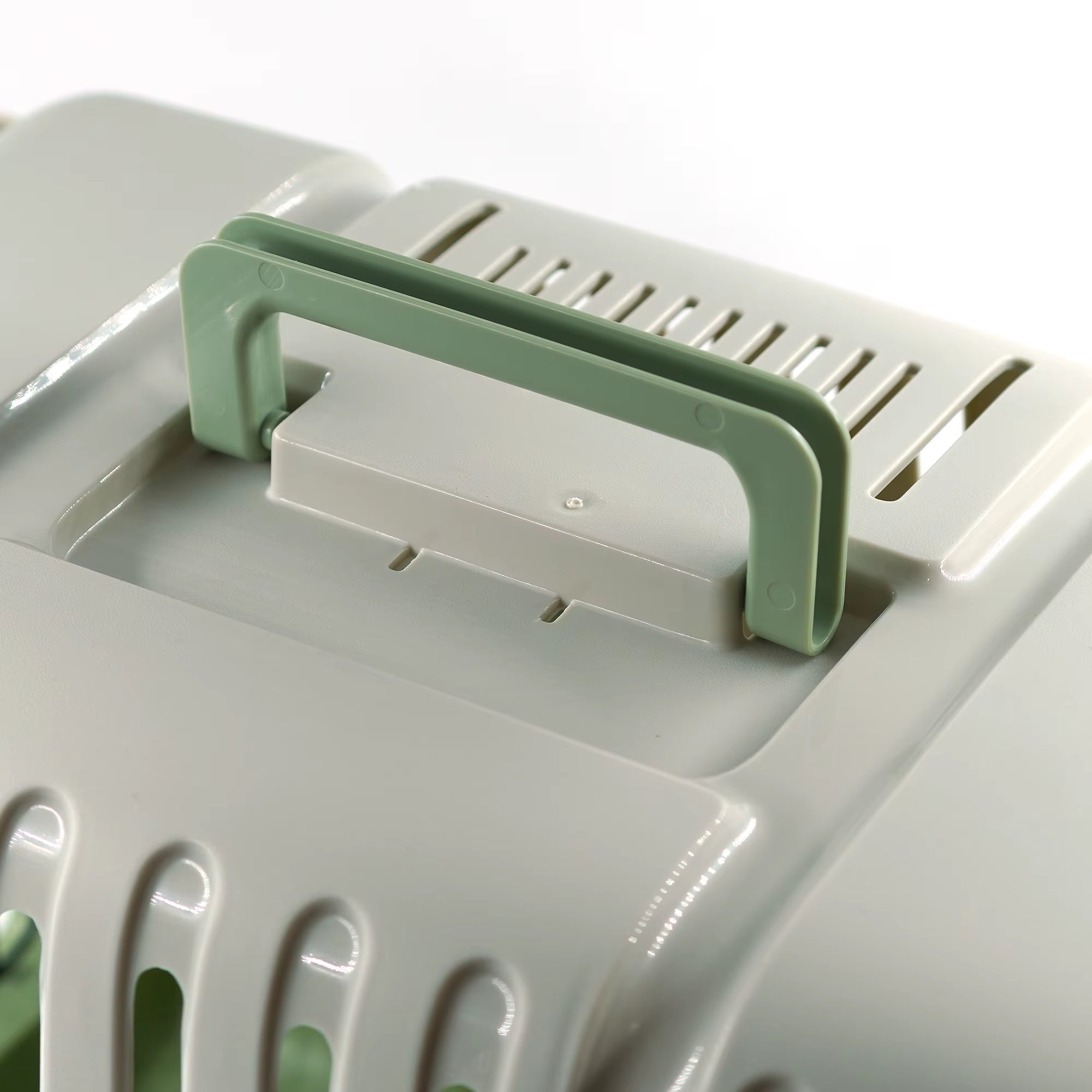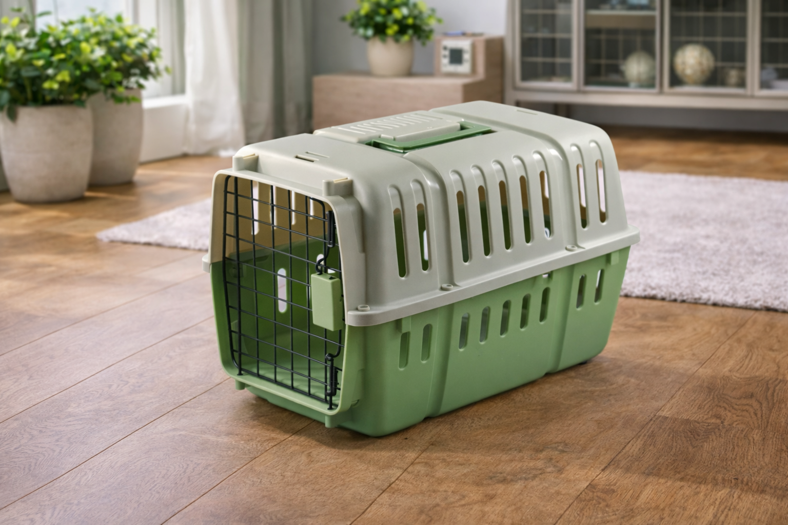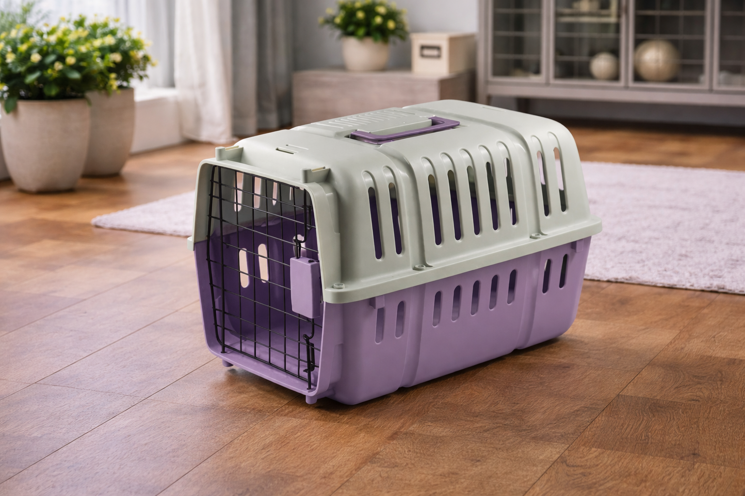 Transportín resistente y seguro para perros y gatos, ideal para viajes, visitas al veterinario y desplazamientos diarios. Fabricado en plástico duradero de alta calidad, ofrece una estructura sólida con amplias rejillas de ventilación que garantizan una correcta circulación del aire y el confort de la mascota.